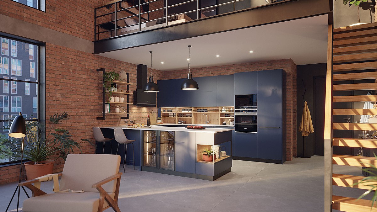 A distribuição com península permite movimentos confortáveis no seu espaço, sendo uma opção muito prática para espaços abertos.
