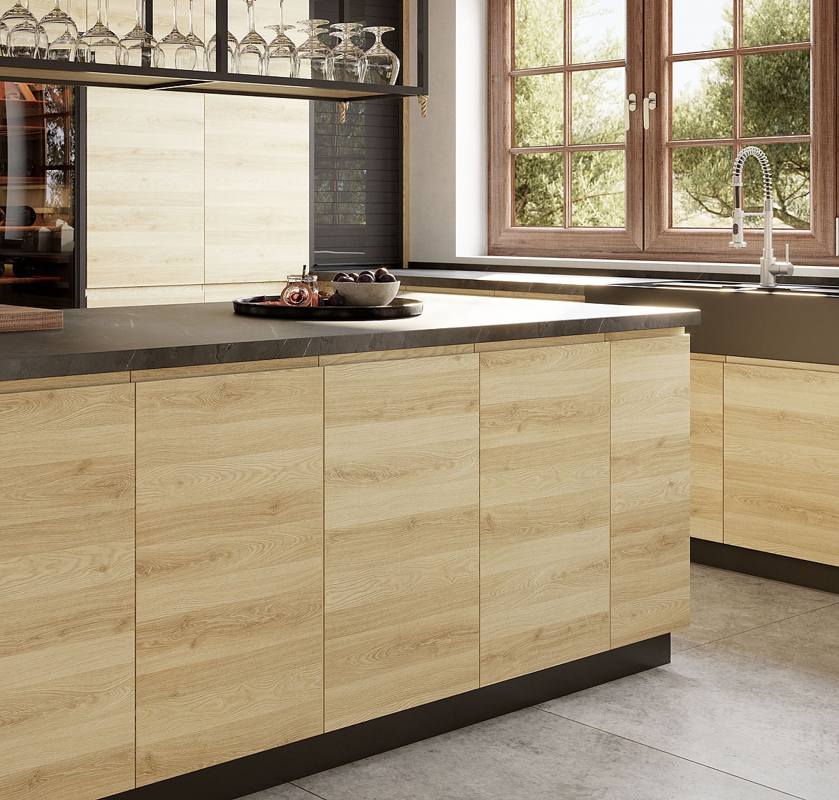 A opção de puxadores integrados na frente simplifica o forma de acesso os móveis, ao mesmo tempo que minimiza o impacto visual.