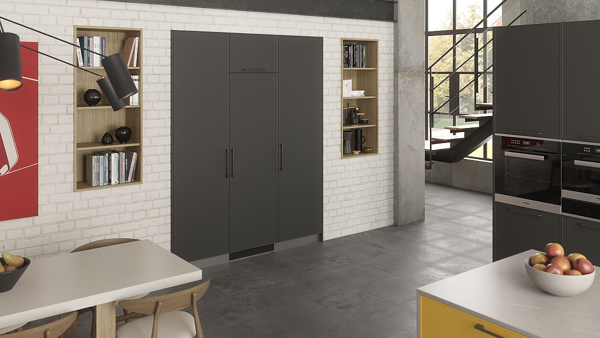 A modulação com colunas proporciona espaços amplos para integrar eletrodomésticos de grandes dimensões.