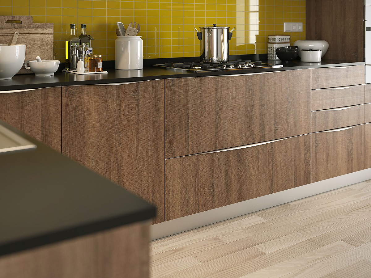 Para maximizar ao máximo a capacidade da cozinha, a planificação é complementada com uma área de módulos altos.