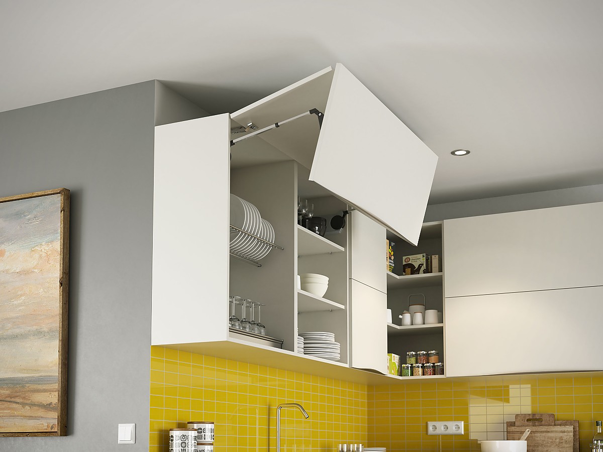 As portas dobráveis permitem acesso direto e conveniente ao interior do móvel, ao mesmo tempo que oferecem grande liberdade de movimento.